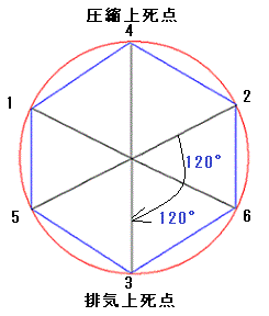 その状態からさらにクランクシャフトを回転方向に240°回転させたとき、圧縮上死点にあるのは第6シリンダです。