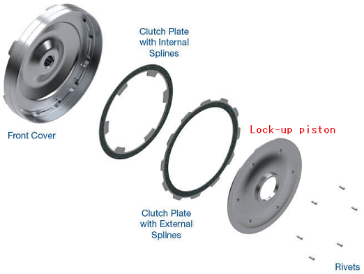 トルク・コンバータ・カバーとポンプ・インペラはつながっていて、タービン・ランナはロックアップ・ピストンとつながっています。