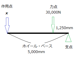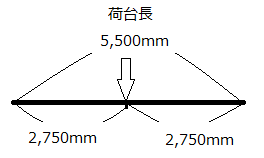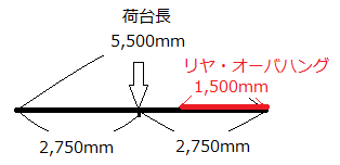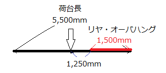 最も求めたかった後軸と荷台中心の間の長さは、$2,750mm-1,500mm=1,250mm$となります。